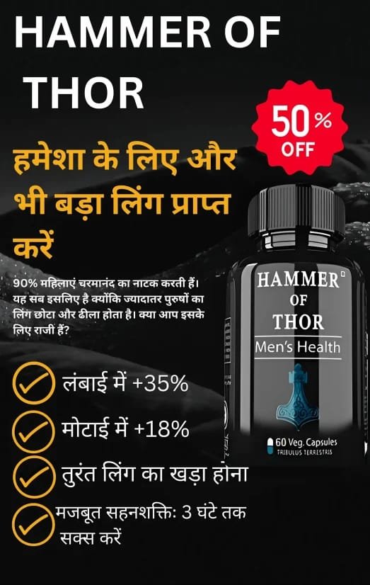 अब Hammer of thor के कई नकली कॉपी प्रोडक्ट बनने लगे हैं इसलिए इसे केवल सप्लायर की ऑफिशियल साइट से ही ऑर्डर करें|दो बार बेइज्जती सुनने से एक बार ट्राय करके देखना अच्छा होता है। एक नई ज़िंदगी की ओर पहला कदम बढ़ाएँ और अपने करीबियों को संतुष्ट कर दें।